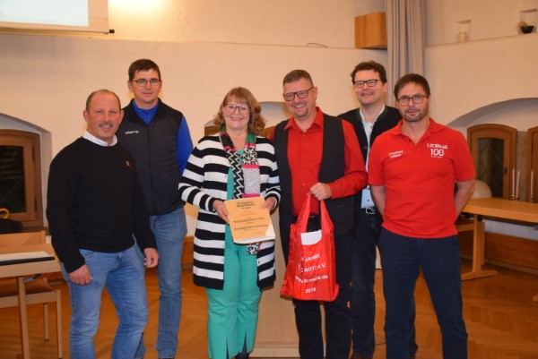 1. Vorsitzender Gerhard Hofmann dankte ihr im Namen des Vereins, aber auch ganz persönlich, für ihr unermüdliches Engagement und ehrte sie für 20-jährige Tätigkeit im Vereinsvorstand mit der Verdienstnadel in Silber mit Gold.